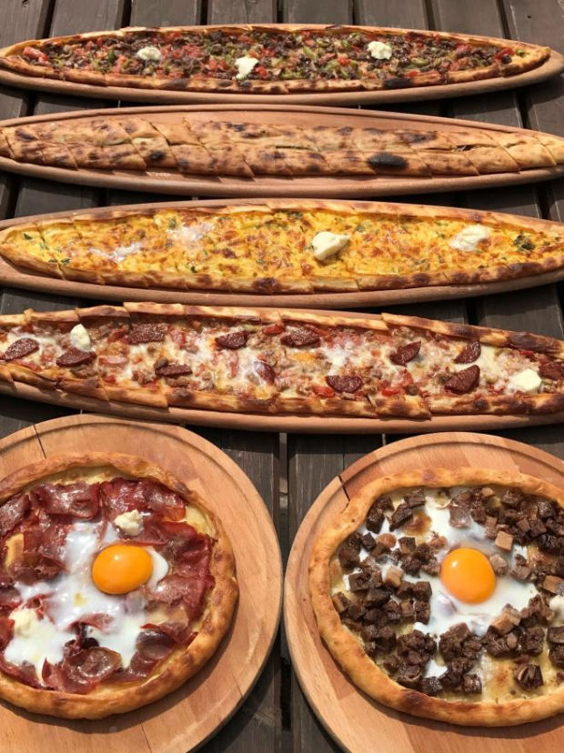 Pizza sosu, mozarellapeyniri, kavurma, çarlistonbiber, kapyabiber, kekik ve roka