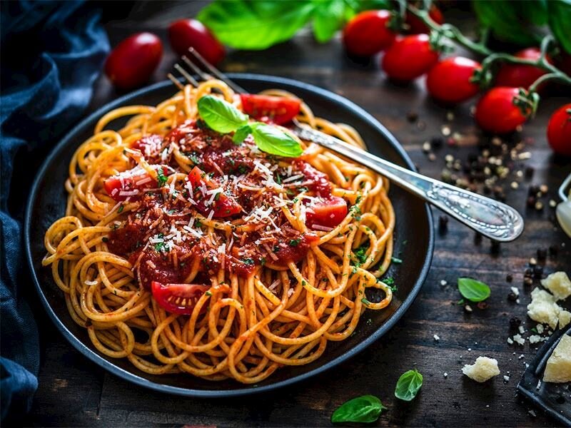 Kıymalı, fesleğenli domates sos ve parmesan peyniri ile